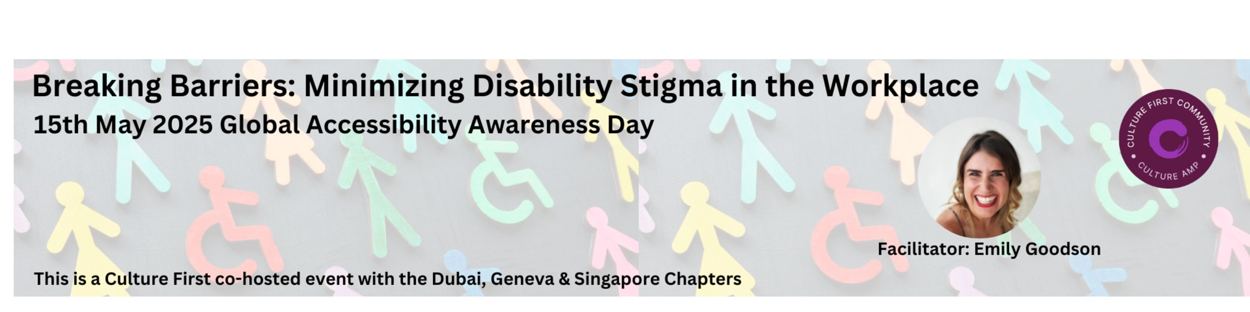 This is going to be a one-of-a-kind Culture First Event as Dubai connects LIVE with Emily from New York and chapter members from Geneva and Singapore, to participate in this truly global community collaboration and exchange of best practices on disability inclusion from different jurisdictions!