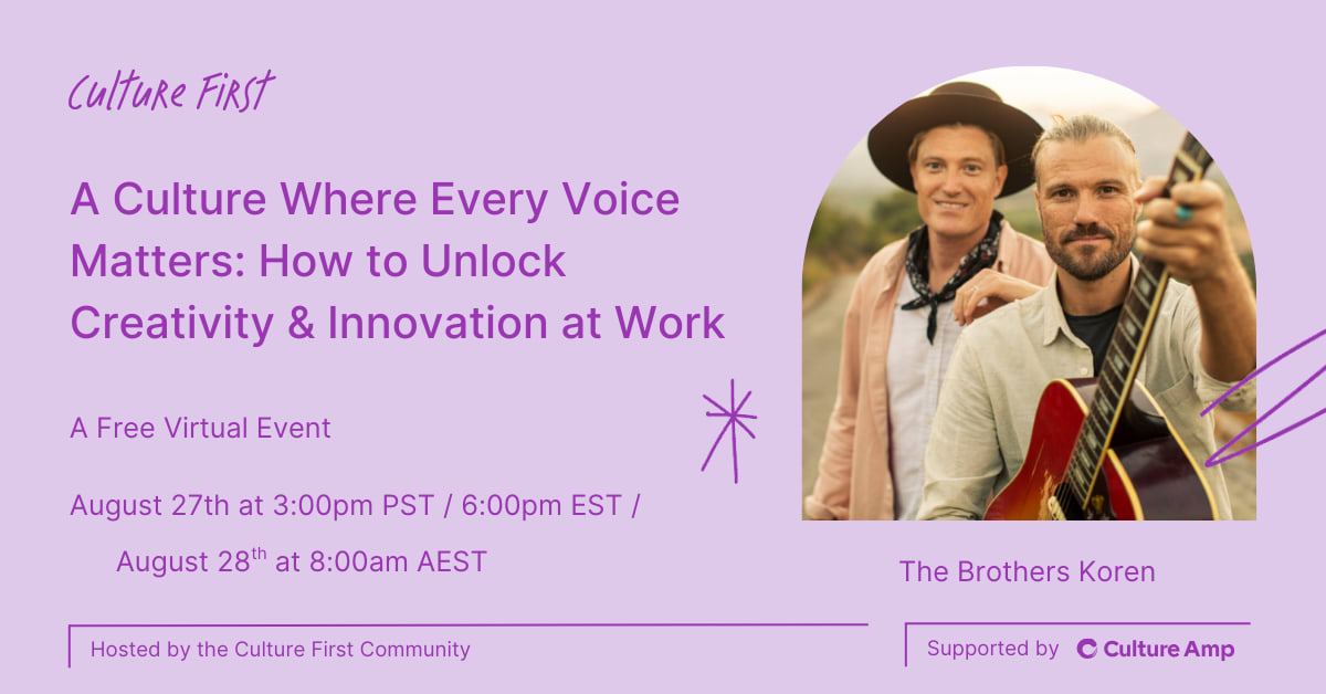 In this session, we’ll explore how to create a culture where everyone's voice is heard, valued, and empowered — and how this leads to psychological safety and innovation at work. The Brothers Koren will guide us through an interactive experience using music as a tool to unlock your creativity and self-expression (though you don’t need any musical talent to participate)!