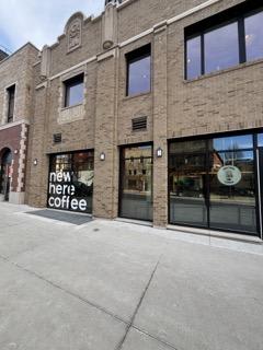 New Here Coffee is on the street level, inside the new Oliv apartment complex/building. It's between State St. and Johnson St.